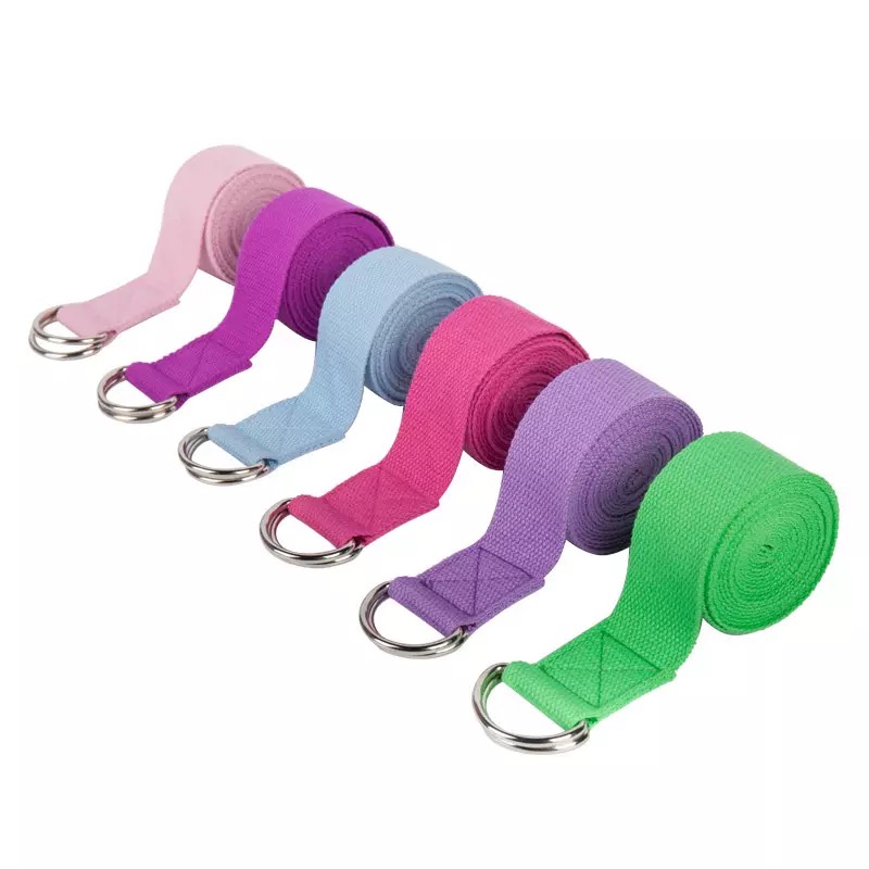 Custom High Quality Safe cotton yoga strap Belt Adjustable D-ring Fabric Exercise Yoga Pull Straps